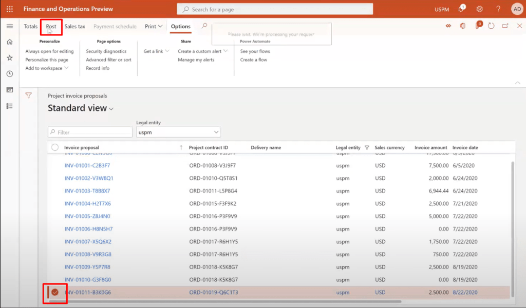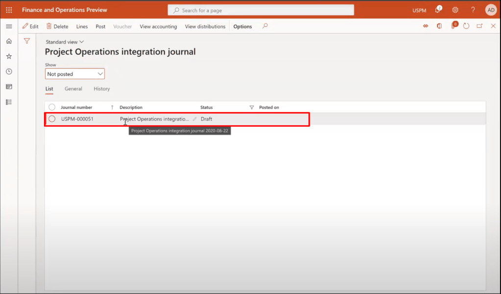 Select the Journal from the below and click on the Post button from Ribbon. This will post all the transactions from the Journal, which also the final step that the Accounts manager will perform to do the invoicing.