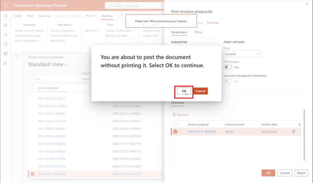 Upon confirming the invoice it gets integrated to the F&O Environment.