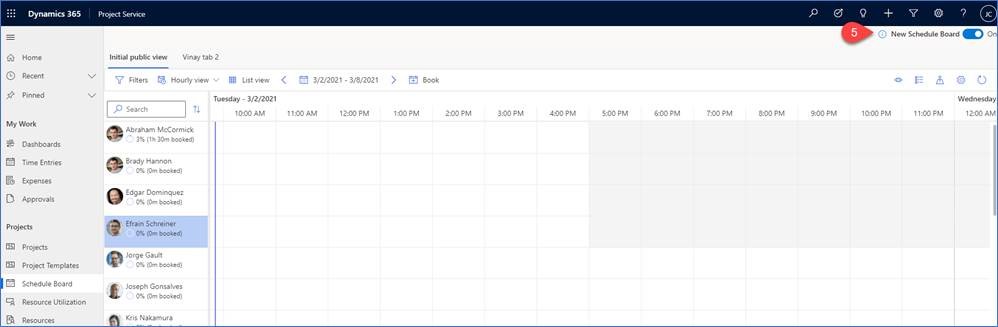 - Open the Project Service App now and navigate to Schedule Board, you will see a toggle button to open the new URS Board.