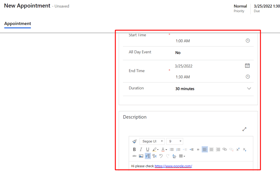 Earlier we used to book an appointment either by using Microsoft Teams or from MS Outlook. But now we can book an appointment from in-app appointments, also we can add links, lists and other rich text in description with new rich text editor control. These features are introduced by Microsoft in Microsoft 2022 release wave 1 plan.