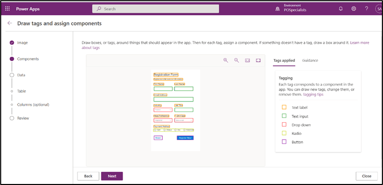 - Draw tags around the things that should appear in the app. Each tag corresponds to a different component as shown in the below image.