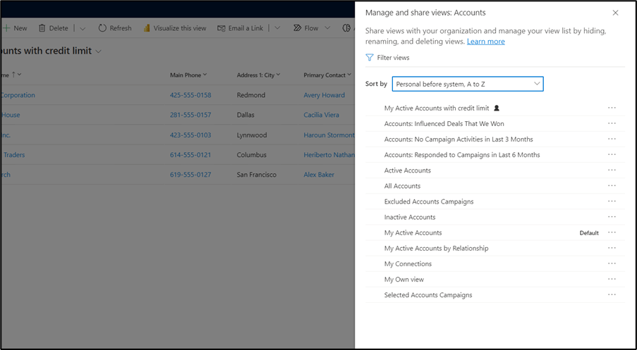 Dynamics 365 2022 release wave II includes a new functionality that provides the ability to save the filter conditions on a grid as a personal view as well as enables you to manage and share views.