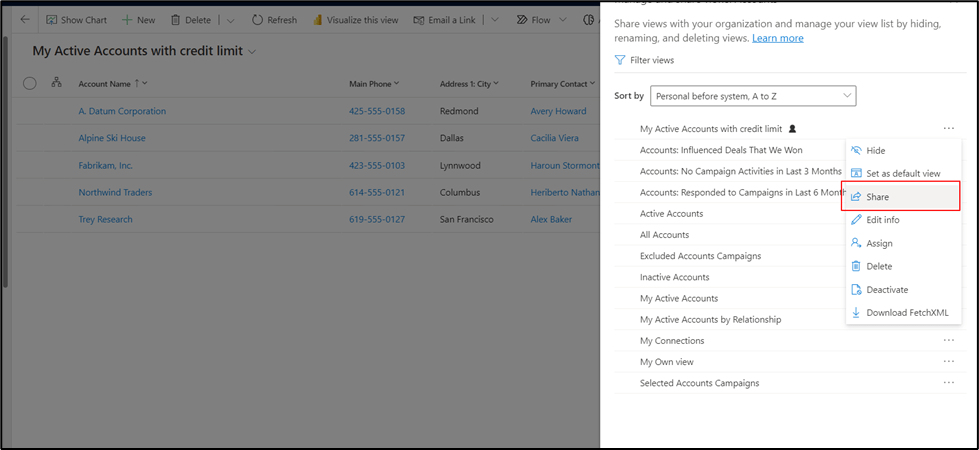 Select the Manage and share views option
