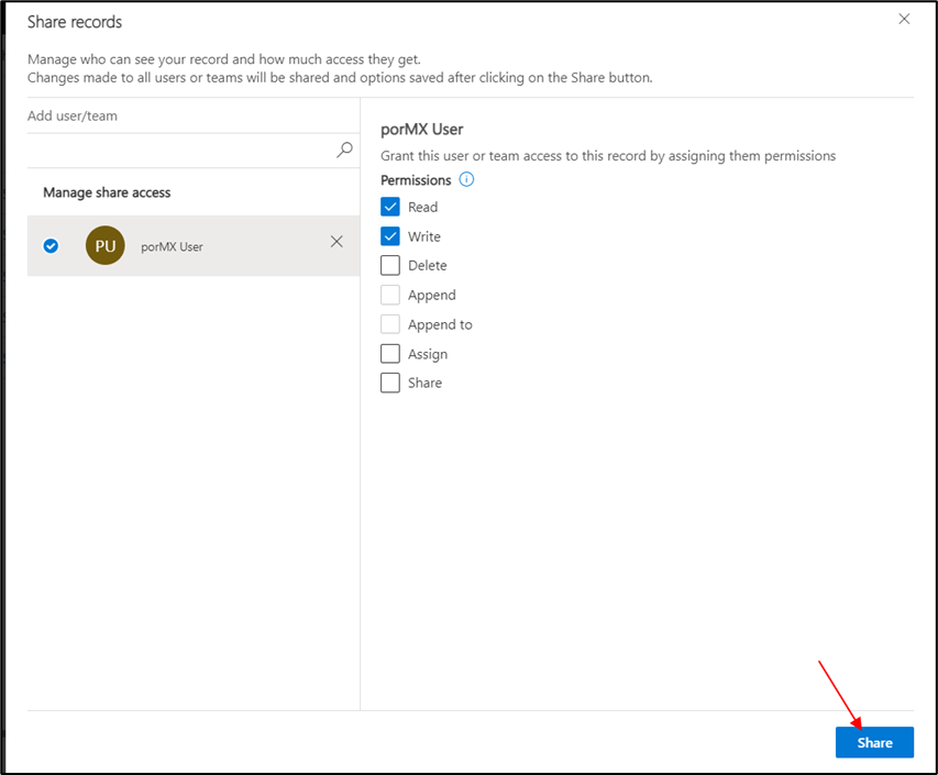 Select the user to share the view