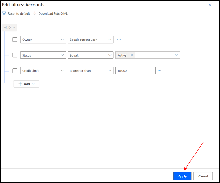 After editing the view filters, select Apply to see changes on the grid page