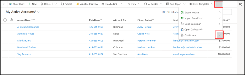 On the command bar, select More commands (⁝) > Create view > Save as new view