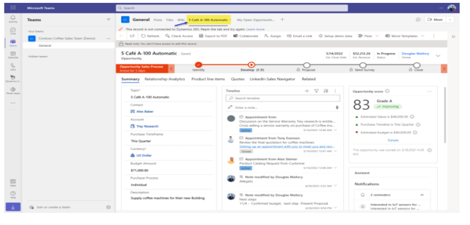 - With MS Teams start new focused chat or link the sales opportunity with an existing chat or request to join an existing group chat on related opportunity.