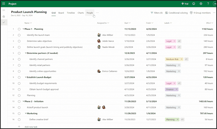 - It is also possible to filter these tasks based on the goals in different views available in Project for the Web: