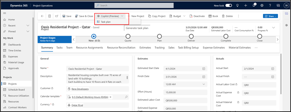 Include essential project details such as start and end dates. If the start date is not specified, the Copilot feature defaults to the project creation date and time.