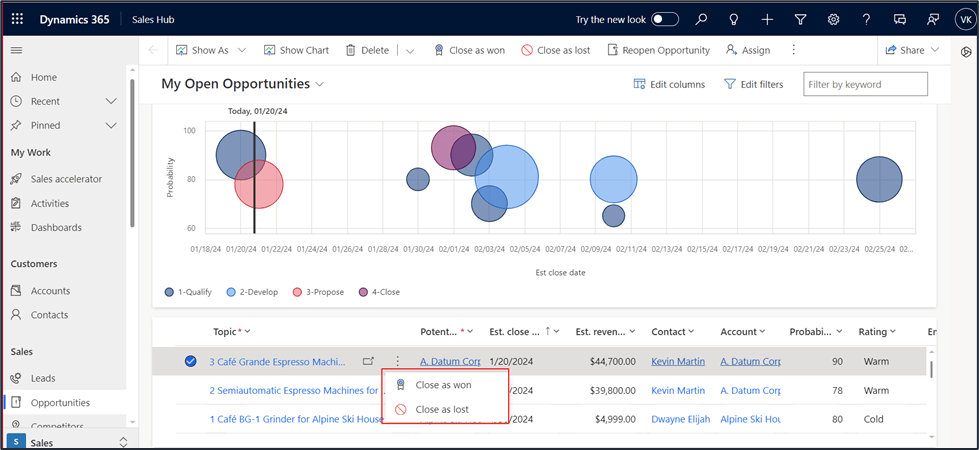 This feature represents an enhanced method for concluding opportunities, whether they are won or lost.