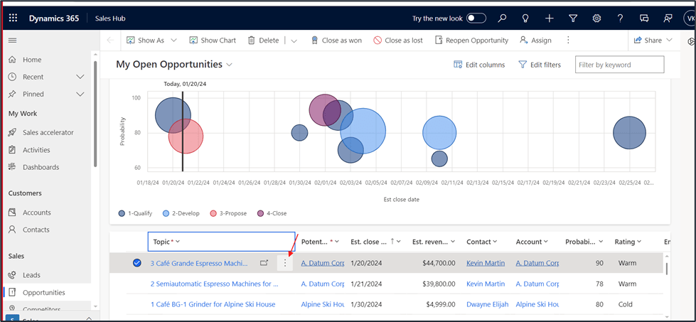 - On Opportunity table, Identify the specific opportunity record that user want to close.