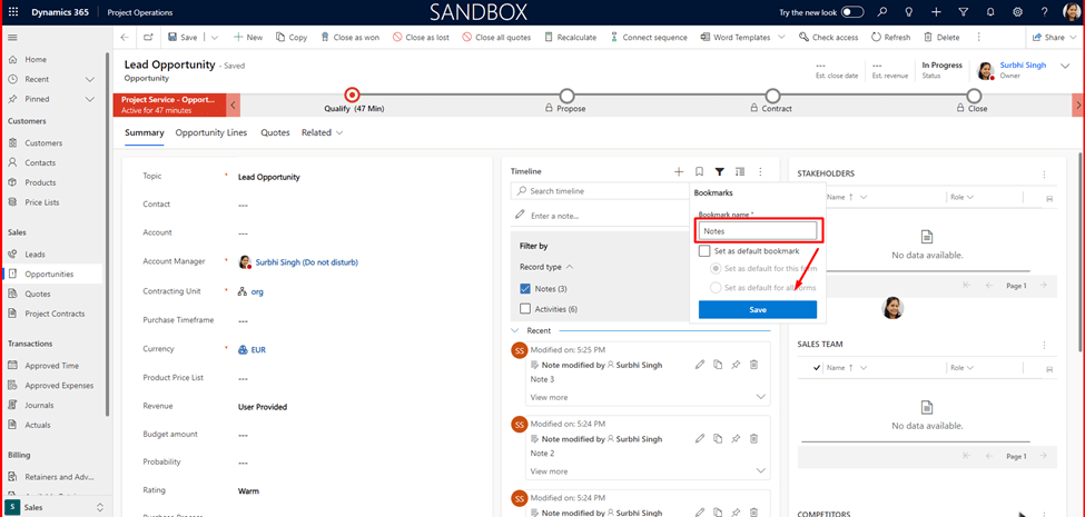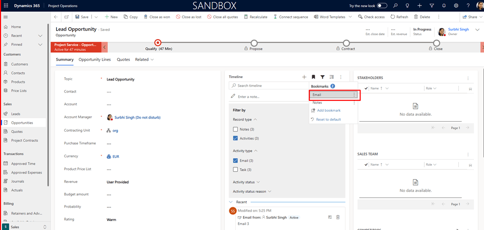 Efficiently manage and organize your Dynamics 365 timeline by creating bookmarks for specific filters. Simplify timeline views by selecting relevant bookmarks based on your preferences.