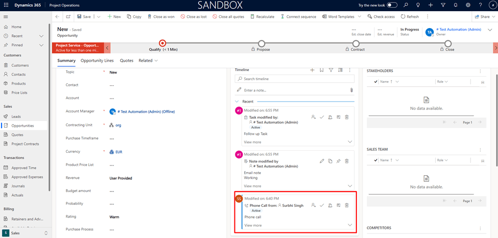 In situations where multiple users collaborate on the same opportunity, it’s common for various individuals to make updates to the timeline. This feature proves invaluable by ensuring you stay informed about any missed updates and providing clarity on the progress of the opportunity.