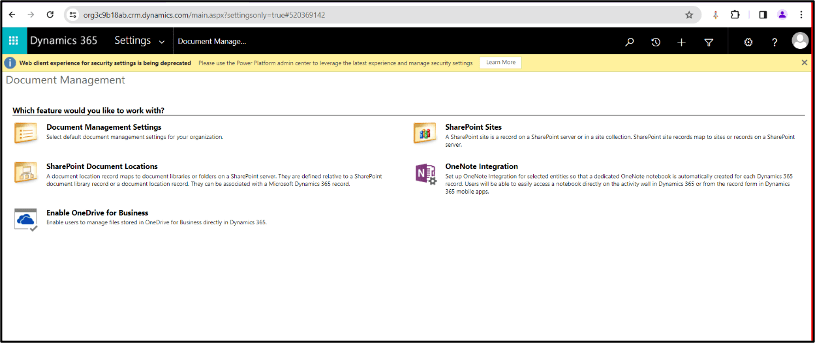 Enabling OneNote integration to provide the advantage of seamlessly incorporating OneNote for capturing or revisiting customer notes directly within our records. This integration can be configured alongside SharePoint Online, but it requires a Microsoft 365 subscription for leveraging OneNote functionality within model-driven and customer engagement apps.